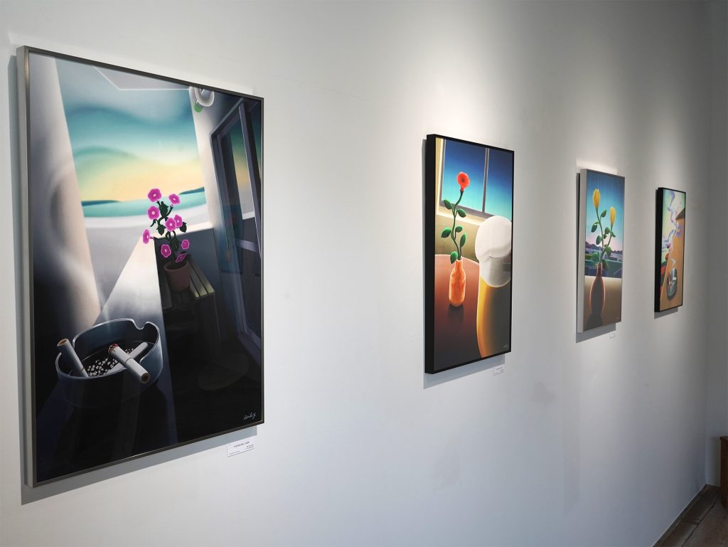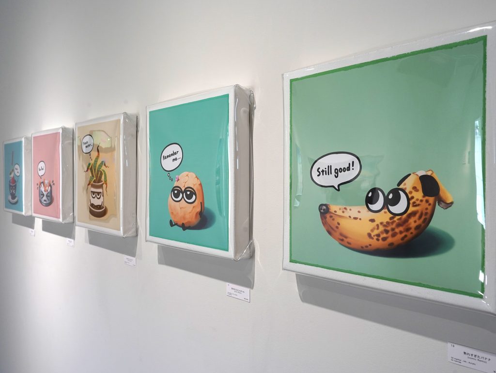 本展のタイトル「melancomic.」はmelancholic(憂鬱, 憂い) と comic(喜劇, 笑い) を合わせた造語で、主に憂いと笑いが同居したような印象や感情を指す言葉として使用しています。ポジティブともネガティブとも捉えられるこの不思議な感覚に人間ならではの面白みや魅力を感じ、絵画作品による表現を行なっています。